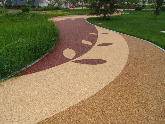 露骨料透水混凝土是以胶结料为粘合材料,将一定粒级的骨料粘合在一起形成多孔型铺面,它以透水混凝土为基层,构成的一种透水铺装地面。其特点是运用天然石头自身的色彩、形状以及润湿的光泽效果,使面层骨料实现自然的非人工雕琢的自然铺面效果。