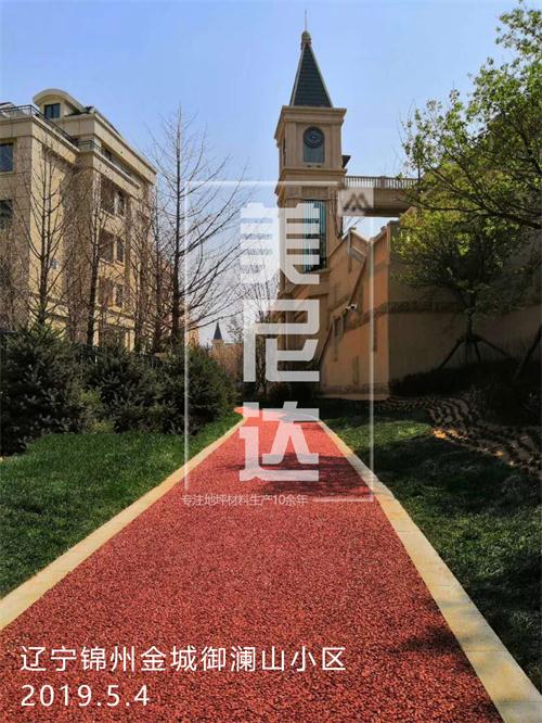 辽宁锦州金城御澜山小区位于 松山新区松山新区光彩立交桥南,施工面积6000余平米,地面主要为红色,透水混凝土厚度13公分,总透水混凝土欢迎选择湖南美尼达合作。